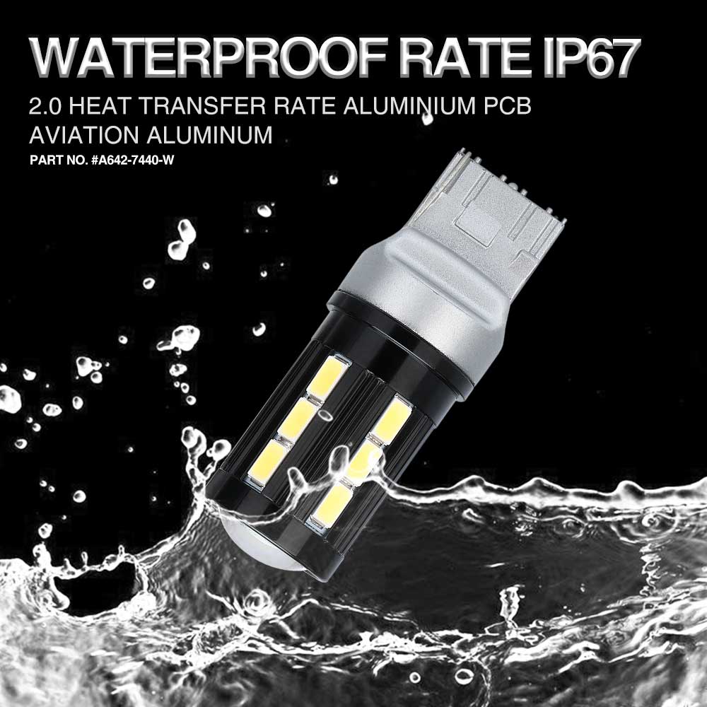 These new 600+Lm blanket of light for the driver to increase safety and nighttime visibility. We choose 5630 chips allow for the increased Lumen output while still drawing less than half the power of the factory halogen bulb. These 5630 chips can endure 105 degree heat testing, also have excellent heat dissipation characteristics, making them extremely reliable even in harsh environments.