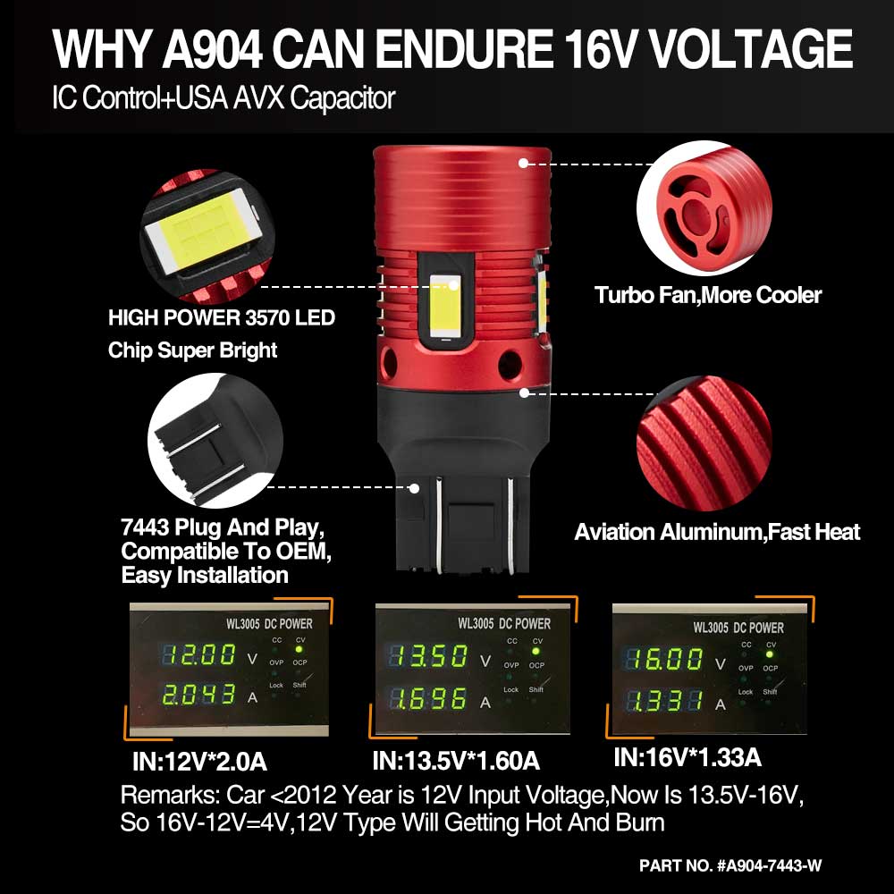 - Replacement for any 7443 bulb size, including 7441, 992, 7444NA, 7443, 7443ST, 7443LL.