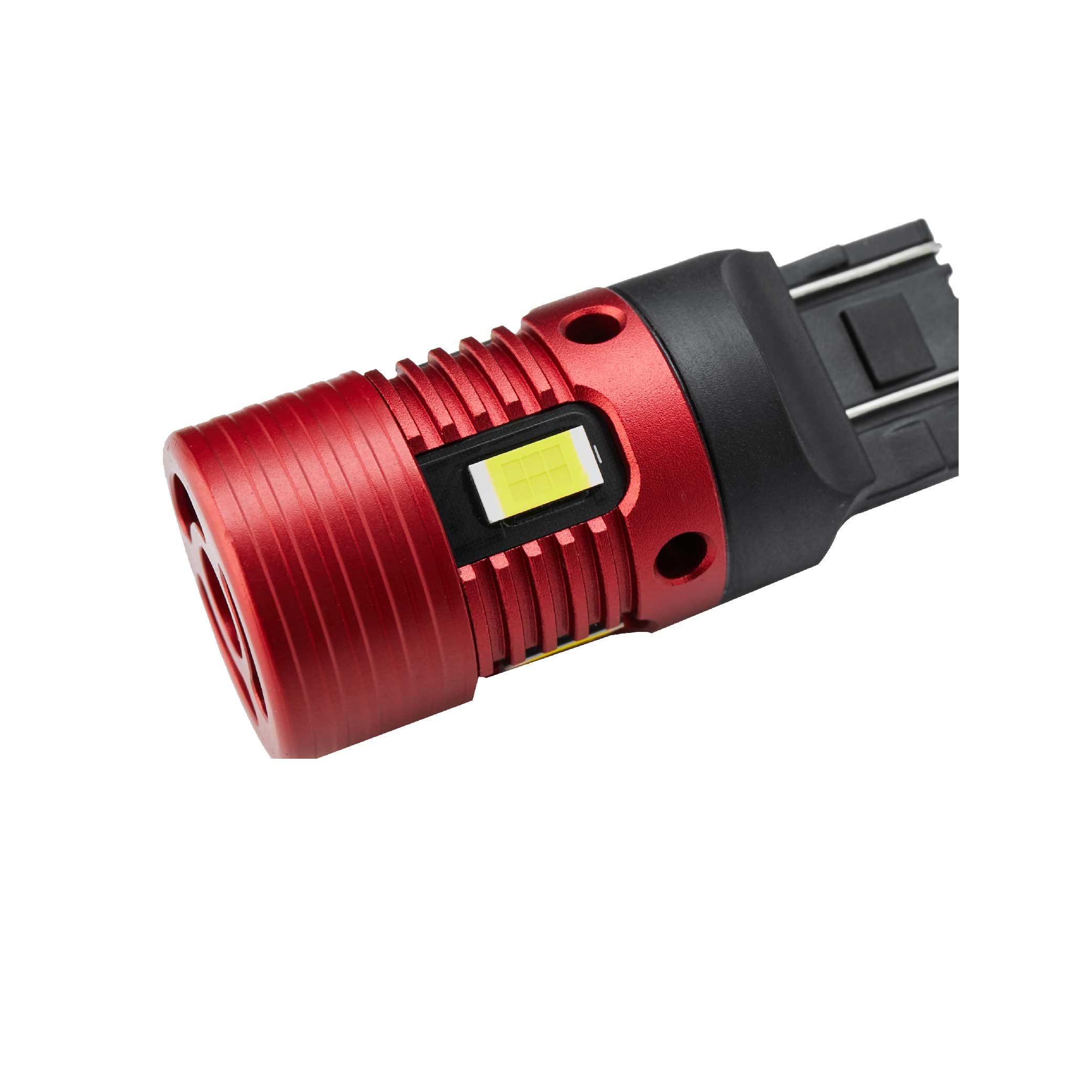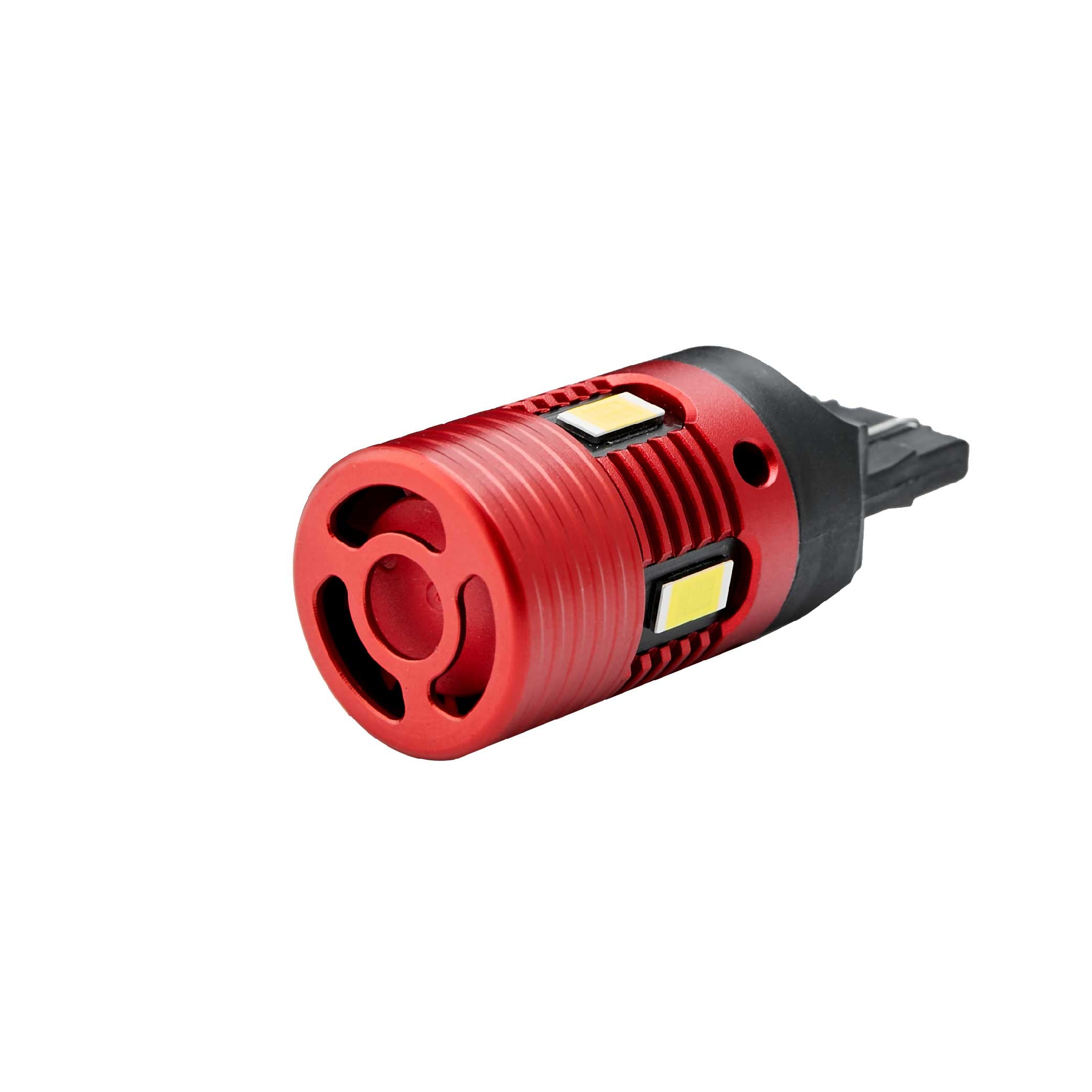 Filament-Style W21/5W LED upgrade bulb, with innovative LED technology. Filament style bulbs combine the even light output of a traditional bulb with the long life, efficiency and vibration resistance of LEDs. Plus they give a crisp, high spec white look to your vehicle. They last up to 3x longer than a standard bulb, and come with a three year guarantee. No wiring changes needed - simply plug in and play. This is the future of autobulb technology.