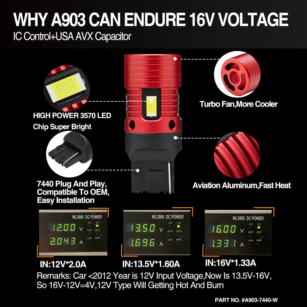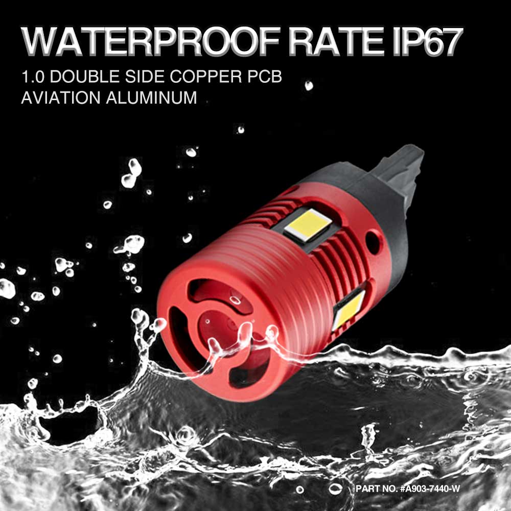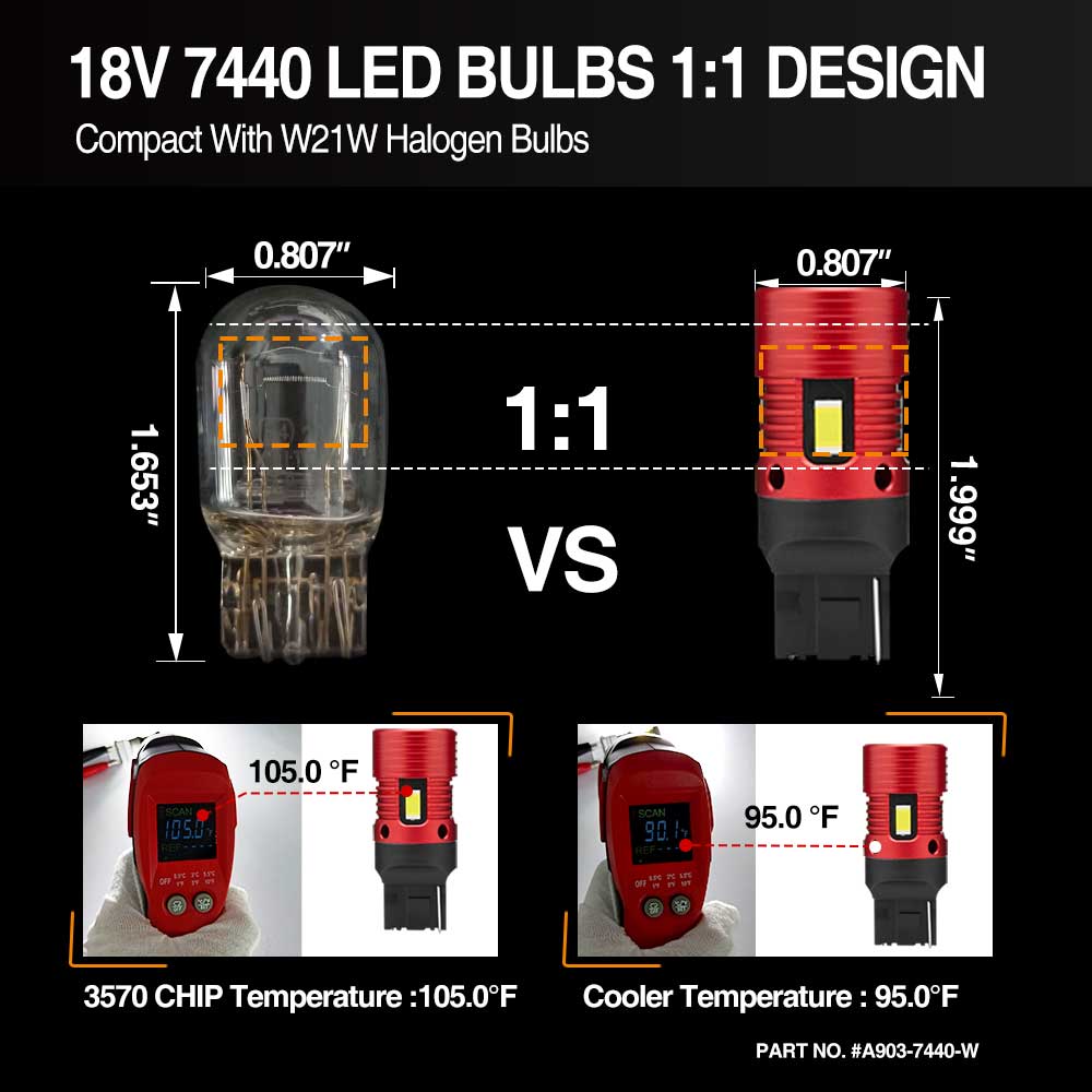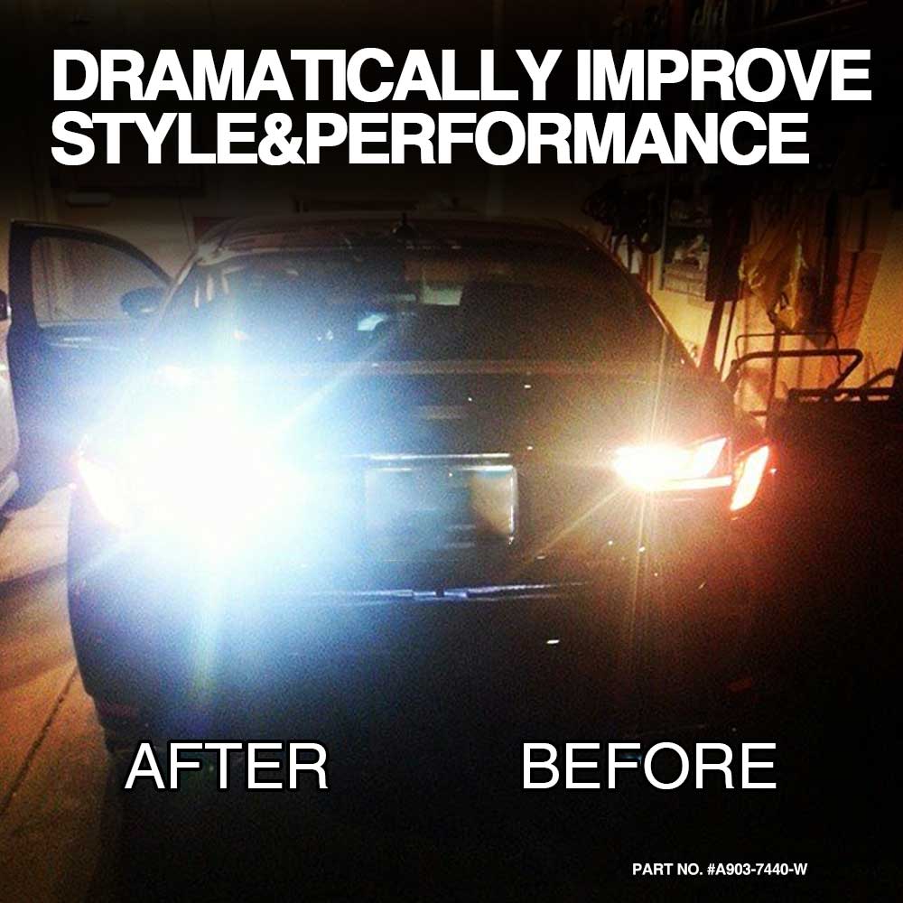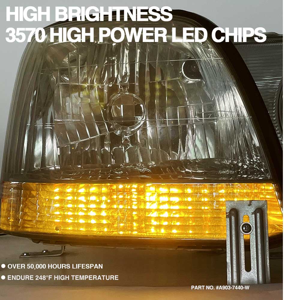 These new 2400+Lm blanket of light for the driver to increase safety and nighttime visibility. We choose 3570 high power chips allow for the increased Lumen output while still drawing less than half the power of the factory halogen bulb. These 3570 chips can endure 105 degree heat testing, also have excellent heat dissipation characteristics, making them extremely reliable even in harsh environments.