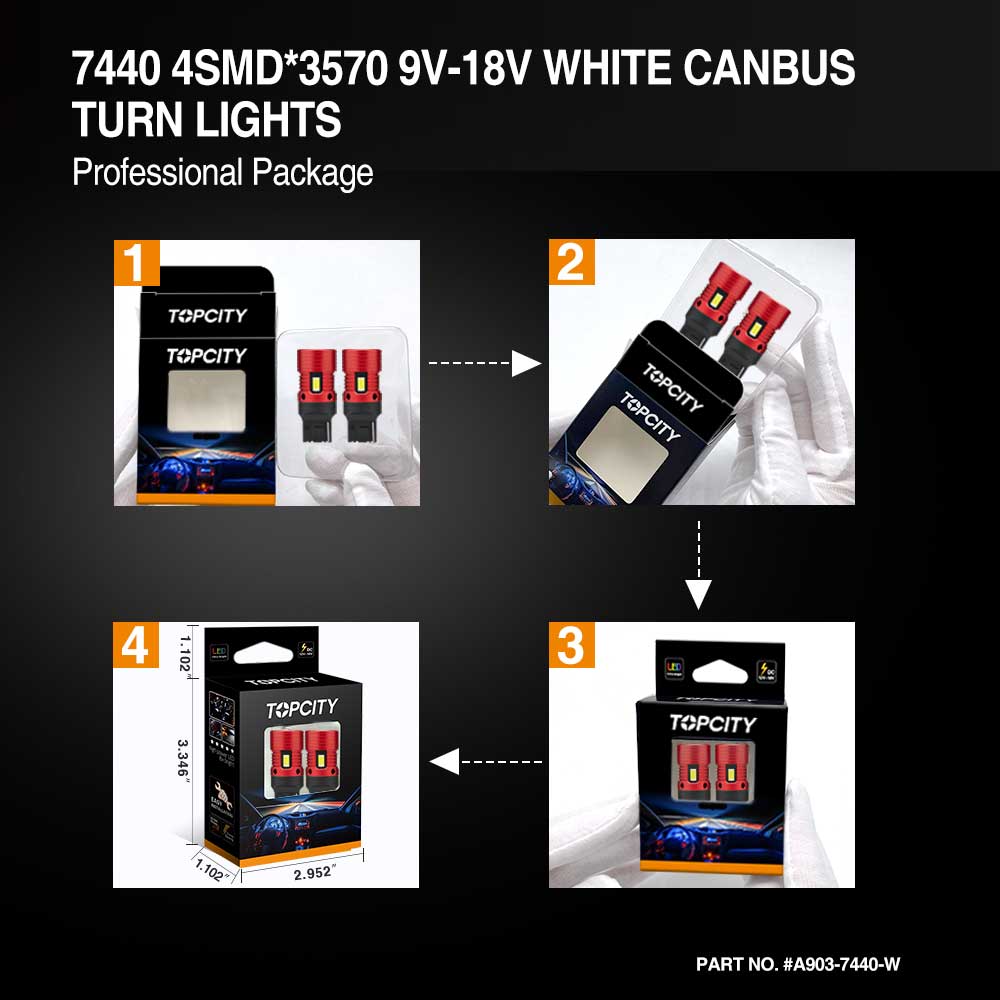 2 x TOPCITY 7440 4SMD 3570 LED BULBS