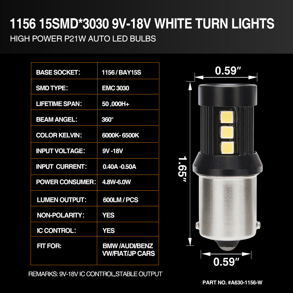 2 x TOPCITY 1156 15*EMC 3030 HIGH POWER LED BULBS