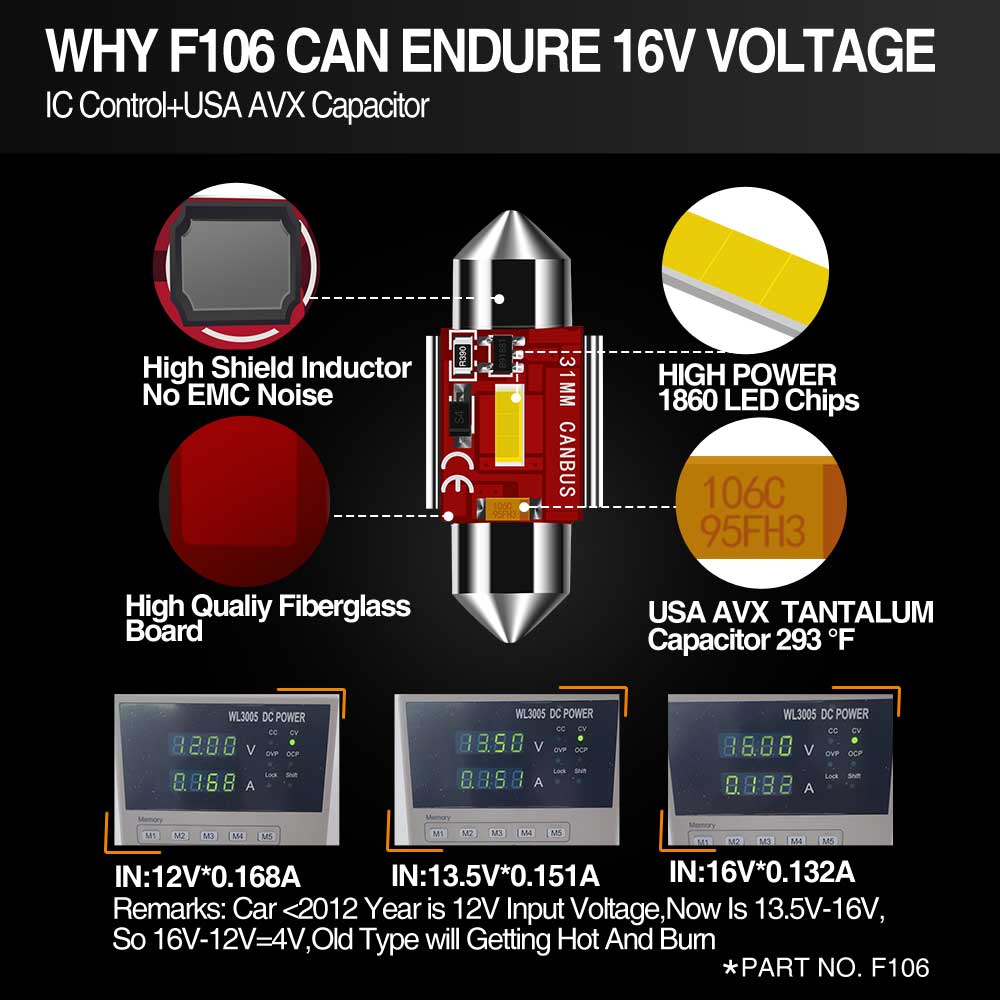 F106: C5W,Festoon High Power 1860 31mm 12V C5W Festoon White Euro Error Free Canbus LED Bulbs For Dashboards,indication solve Canbus errror codes