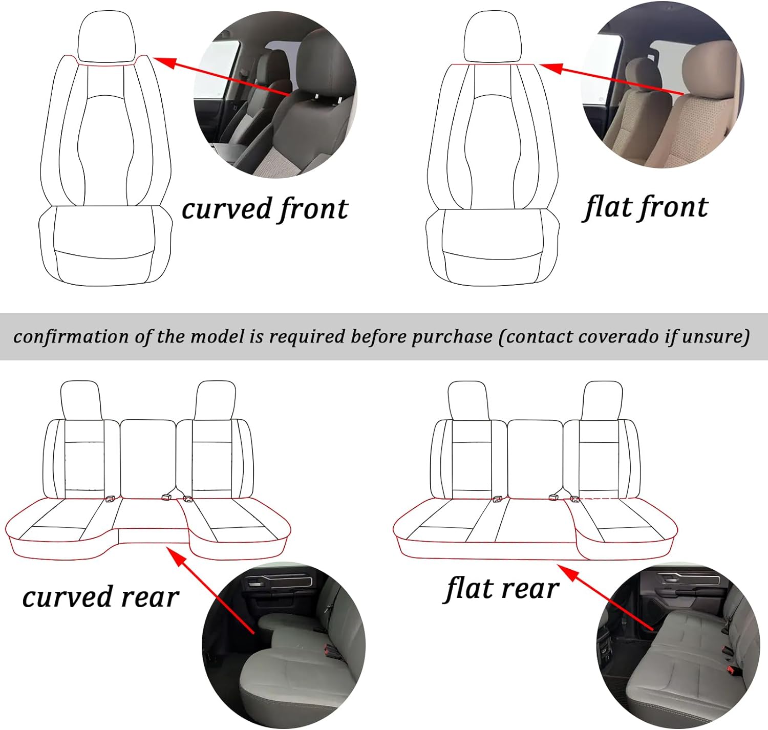 · 【ADAPTATION】These seat covers specifically designed for Dodge RAM, seat covers for truck provide a perfect fit for 2009-2018 Ram 1500, 2010-2024 Ram 2500 3500 Note: customized fit for curved front seats & curved rear only(not suitable for solid seats).