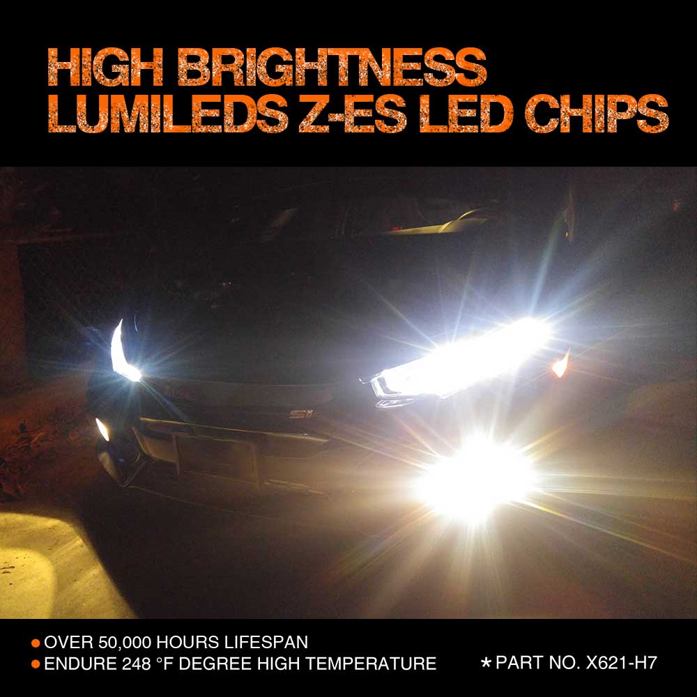 These new high-output LED Headlight bulbs create a 6,000+Lm blanket of light for the driver to increase safety and nighttime visibility. Lumileds Luxeon ZES chips allow for the increased Lumen output while still drawing less than half the power of the factory headlight bulb. These smaller chips also have excellent heat dissipation characteristics, making them extremely reliable even in harsh environments.
