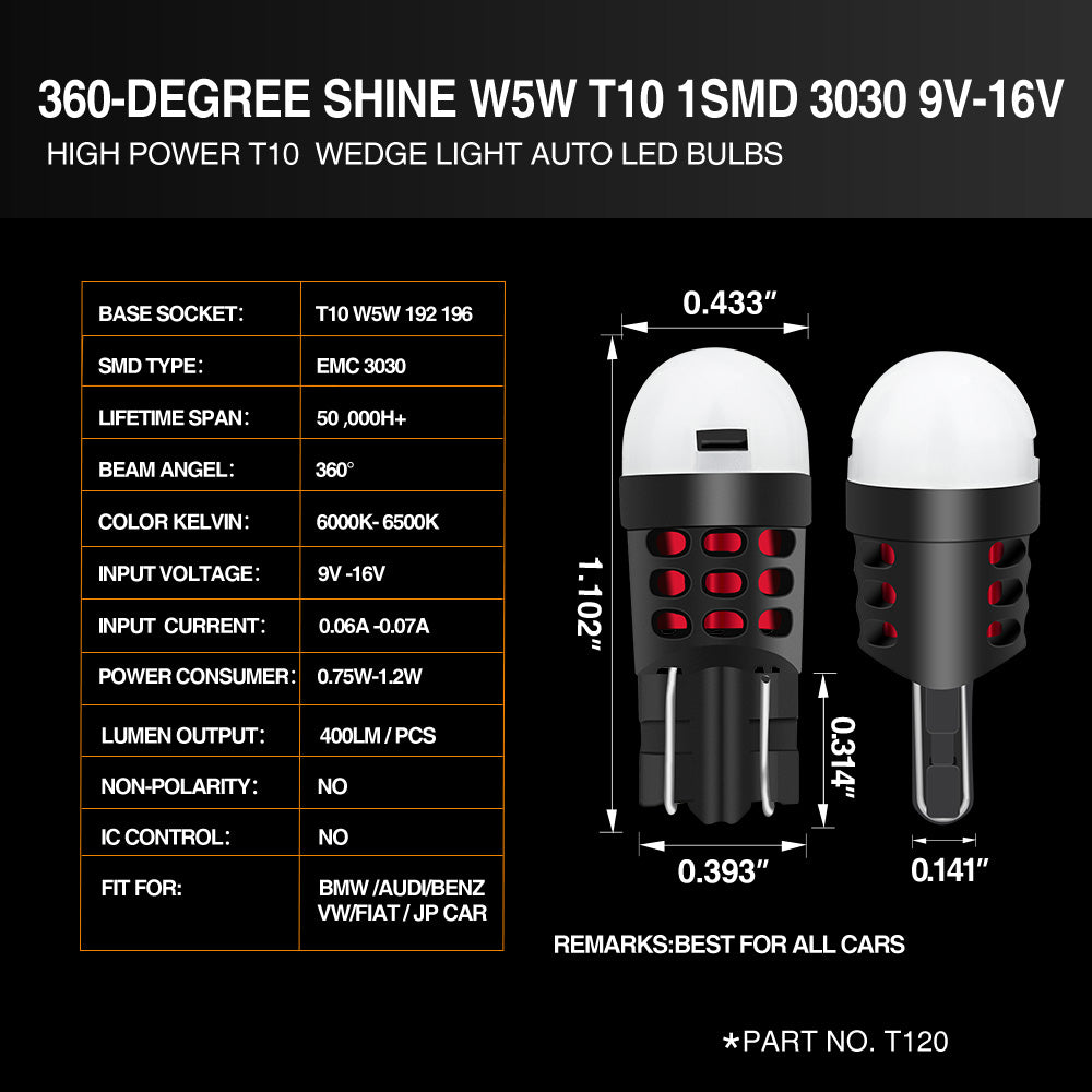 2 x TOPCITY T10 1SMD 3030 LED BULBS